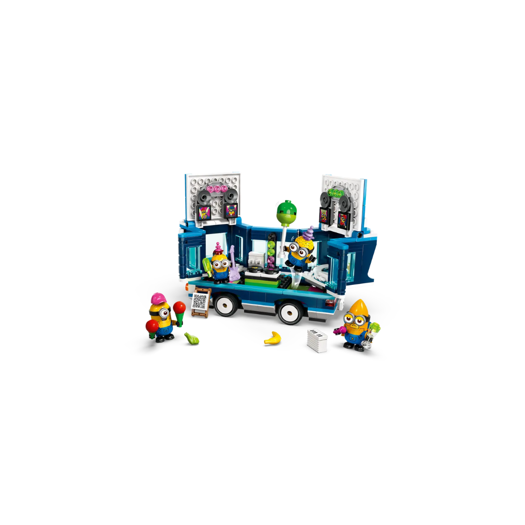 Rinkinyje yra 4 pakalikų figūrėlės: Filas, Melas, Deivas ir padangių megapakalikas Gasas, kuris filme Bjaurusis aš 4 pasirodo pirmą kartą. Autobusas turi vairuotojo sėdynę ir ant stogo įtaisytą strypą Gasui įsikibti. Viena jo pusė atsidaro, o nuėmus stogą galima pamatyti šokių aikštelę, didžėjaus pultą, elektrinę gitarą, pianiną, mikrofoną, šviesas, garsiakalbius ir sūkurinę vonią! Dauguma elementų yra nuimami, kad būtų galima išplėsti žaidimą už autobuso ribų. Šis smagus žaislas, skirtas vaikams, kupinas ryškių spalvų ir šaunių priedų, įskaitant vėliavą, balioną, ledus, kepures, gėrimus, šviesas, garsiakalbius ir ekranus. Vaikai taip pat galės mėgautis skaitmeninėmis pramogomis su programėle „LEGO Builder“.