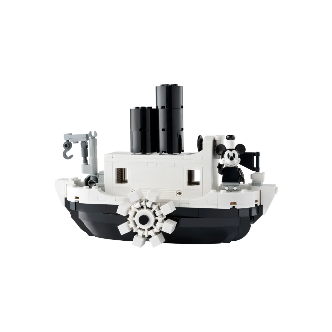 - Nostalgija persmelktas modelis. Šiame 100-ajai „Disney“ sukakčiai paminėti skirtame rinkinyje yra juodos ir baltos spalvos konstruojamas laivas su ratu ir judančiais garo vamzdžiais bei minifigūrėlė, įkvepianti žaidimui vaidmenimis