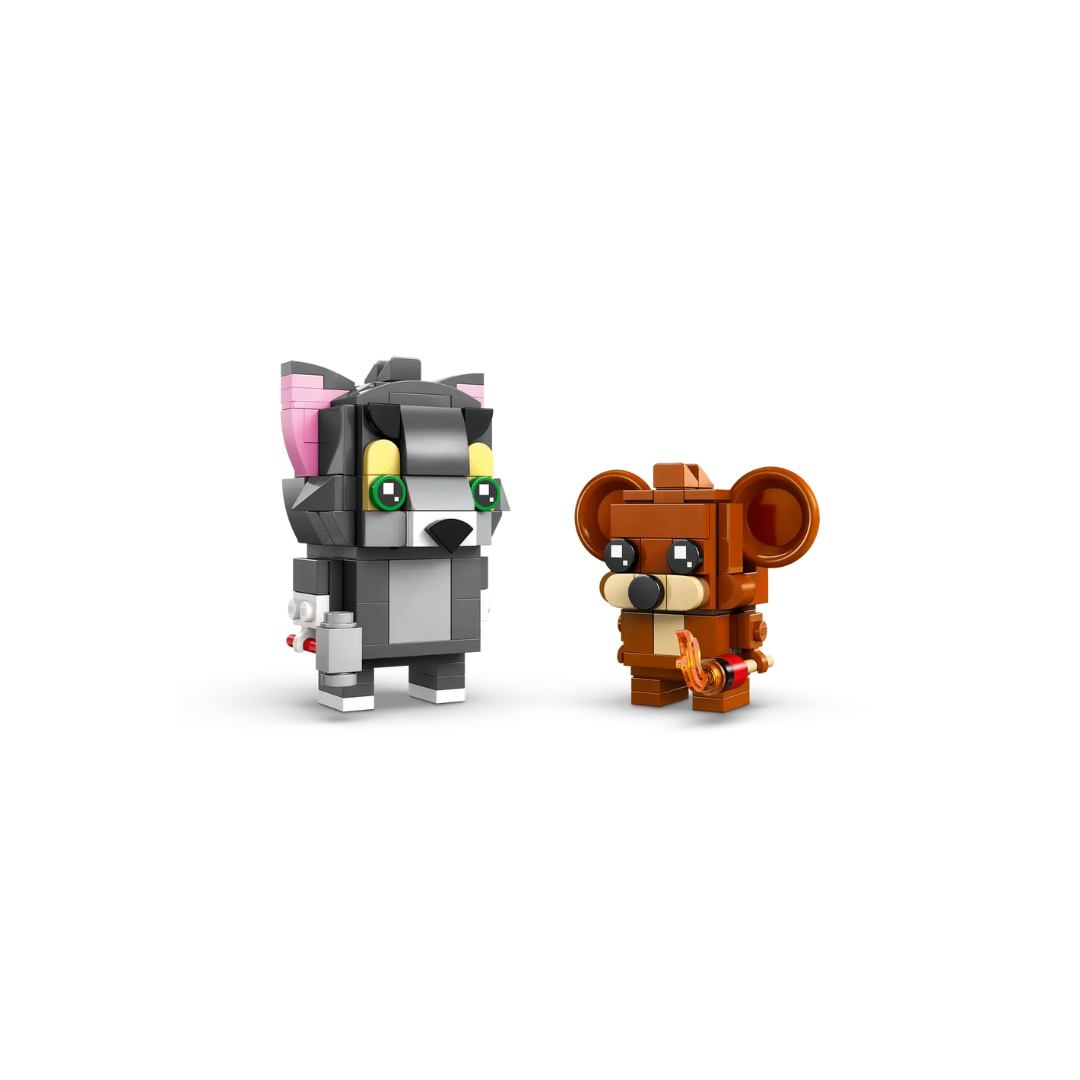 Švęskite Tomo ir Džerio išdaigų 85-metį su filmo tematikos „LEGO® BrickHeadz™“ žaislu „Tomo ir Džerio figūrėlės“. Atkurkite komiškus animacinio filmo herojų santykius konstruodami katės ir pelės figūrėles su priedais. Jos vaizduoja, kaip Džeris padega Tomo uodegą degtuku, o Tomas persekioja Džerį su plaktuku.