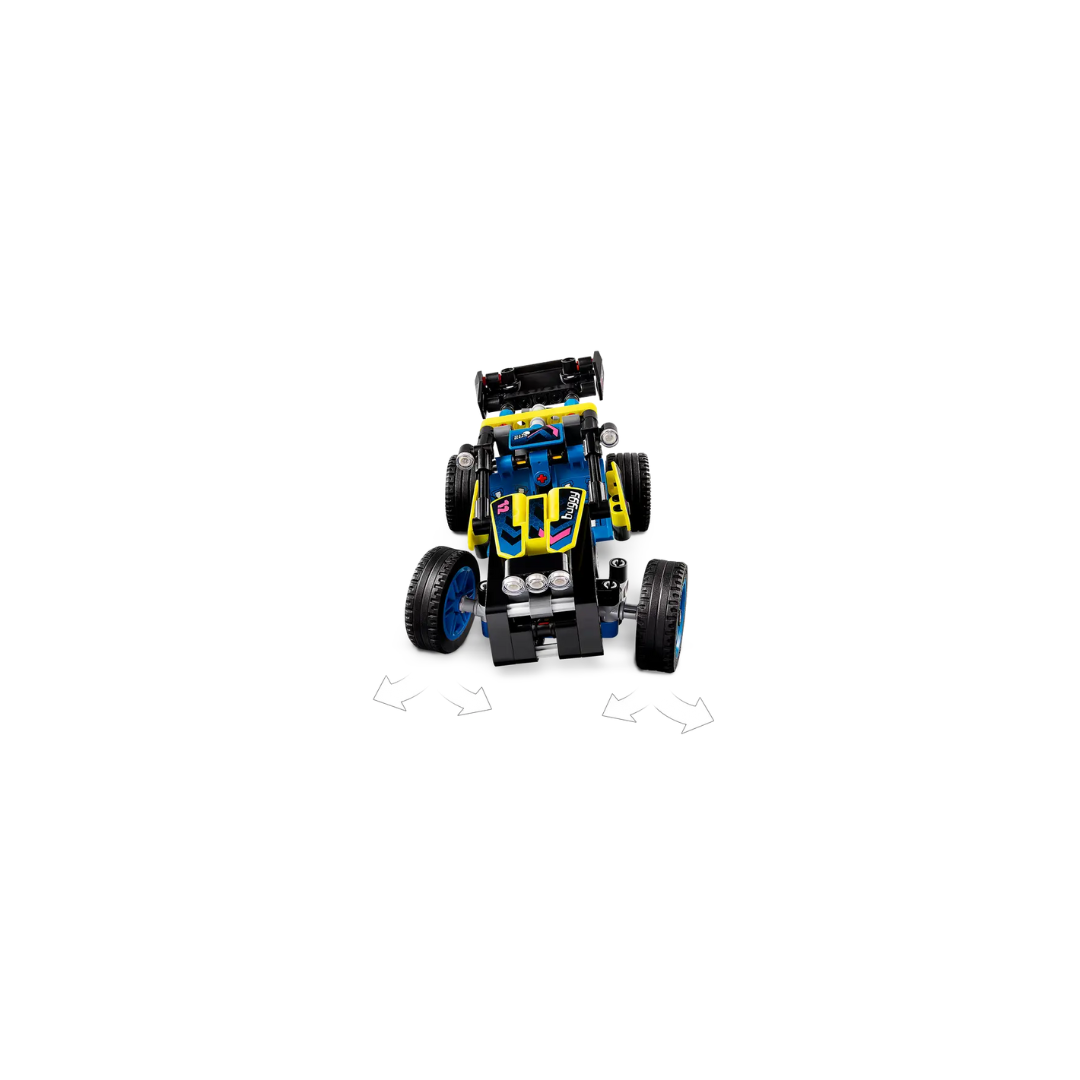 • Konstravimo rinkinys vaikams nuo 8 metų. Lenktyninių automobilių gerbėjai patirs daug džiaugsmo konstruodami ir žaisdami su „LEGO® Technic“ bekelės lenktynių bagiu, skirtu žaislines transporto priemones mėgstantiems berniukams ir mergaitėms