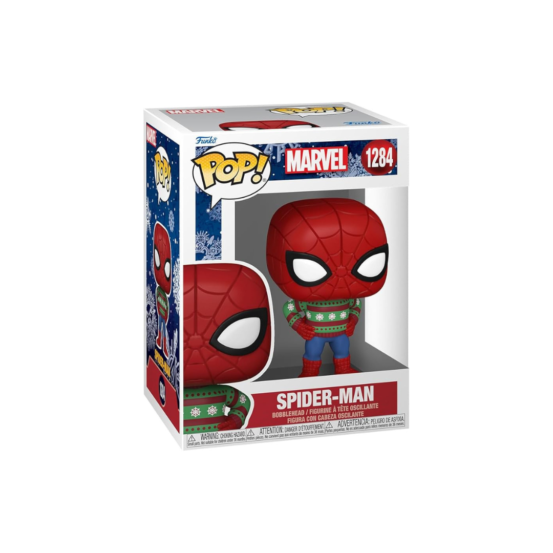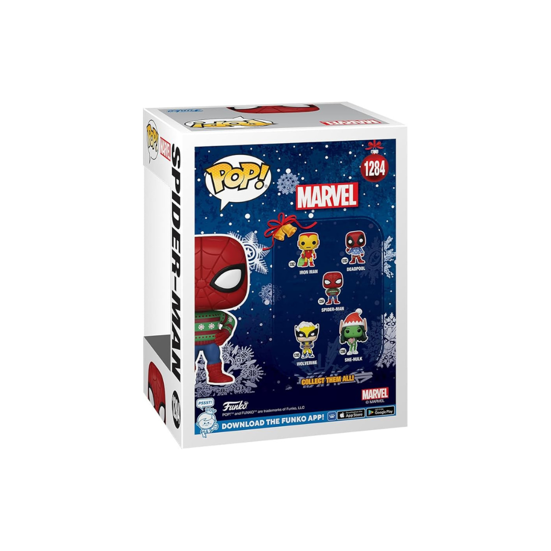 Ši figūrėlė vaizduoja Spider-Man, dėvintį ryškiai raudoną ir mėlyną Kalėdinį megztinį su sniego gniūžtėmis ir žaliomis eglutėmis – klasikiniu „ugly sweater“ stiliumi. Šventiškas megztinis dera su jo įprastu kostiumu, todėl Spider-Man išlieka atpažįstamas, tačiau įgauna žaismingą ir šventinę išvaizdą.